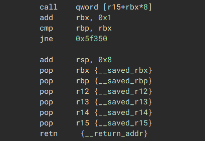 If we set rbx to 0 it essentially becomes call [r15] where we can reference a GOT function.